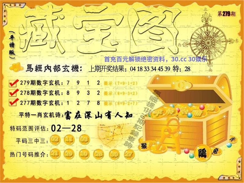 278期:琴棋书画【棋书琴】开:虎28准 |